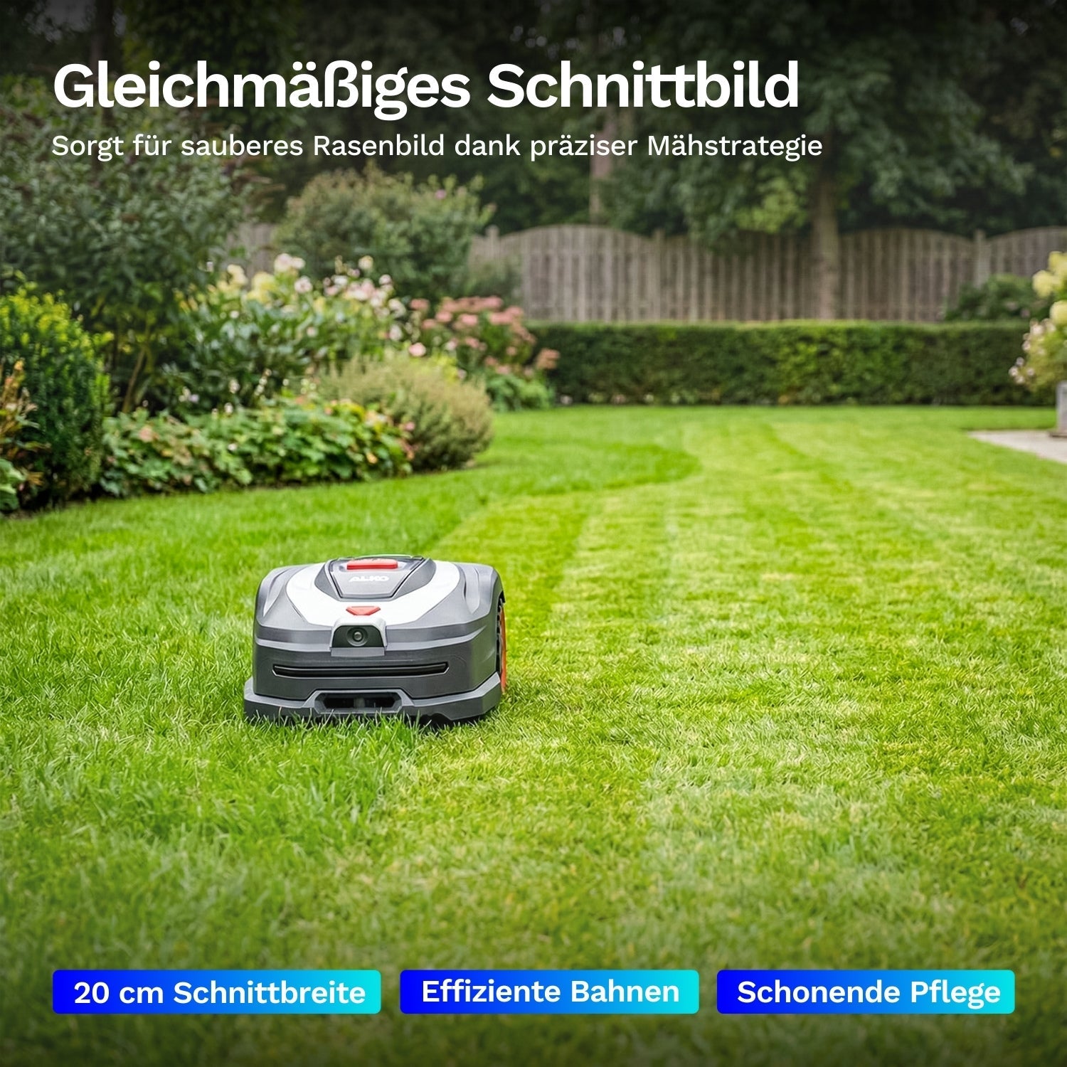 Präzises Mähen in parallelen Bahnen oder im Zufallsmodus
